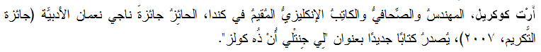 أكسِل دُرْلينْياك وجائزةُ ناجي نعمان الأدبيَّة الاستِثنائيَّة