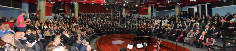 An unprecedented commemoration related to the centenary of the Armenian genocide took place at Notre-Dame University (Zouk Mosbeh). The meeting was presented by Georges Kordahi, with as intervening parties: Monsignor Georges Yéghéyan, poet Antoine Ra’d, former Prime Minister Michel Aoun, former President of the Republic Amine Gémayel and the Maronite Patriarch Cardinal Béchara Ar-Ra’i. The Armenian Catholic Patriarch, Nerses Bedros XIX, ended the event with a prayer, while five hundred copies of Naji Naaman’s volume entitled «One hundred years after, the genocide continues» (published by the FGC) were distributed gratis to the public. The same public had also the chance to hear «Groung», the choral of the Armenian Catholic Patriarchate.