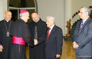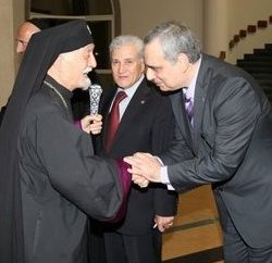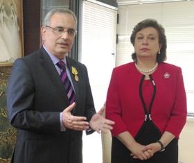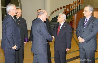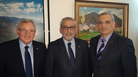 The Armenian Minister of Diaspora, Hranush Hakobyan, hosted Naji Naaman, who has been granted the Medal of Gratitude by the decree of President Serzh Sargsyan on the occasion of the Independence Day of the Republic of Armenia and for his contributions to the strengthening of cultural ties between Armenia and Lebanon. Before that, Mr. Naaman had talks in Stepanakert with speaker Ashot Ghulian, and, in Yerevan, with the vice-minister of culture, Nerses Der Vartanian. He decided that MNAC and FGC shall supply books to three public libraries in Armenia, free of charge.