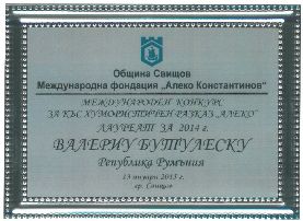 Valeriu Butulescu, Romanian thinker, writer and politician, Naji Naaman’s literary prize (2006) and Ambassador for Gratis Culture (FGC) since 2011, received in Bulgaria the Aleko (Konstantinov) International Award for Humorous Short Story.