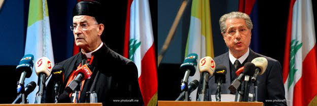 وتكلَّم البطريرك المارونيّ الكاردينال مار بشارة بطرس الرَّاعي، مُختَصِرًا ما أعدَّه في المناسبة، فوجدَ أنَّ "ثمَّة مخطَّطًا إستراتيجيًّا متواصلاً لمجازرَ بدأت مع السُّريان والأرمن والأشوريِّين والمسيحيِّين في جبل لبنان، وأُخرى نراها اليومَ بأمِّ العين، وكأنَّ حضارةَ العالم تسيرُ إلى الوراء، والدِّينُ يُستخدَمُ وسيلةً للتَّعصُّب الدِّينيّ". وسألَ أنْ "لماذا هذا العداءُ للمسيحيَّة المشرقيَّة في الدُّول العربيَّة والإسلاميَّة رغمَ أنَّ المسيحيِّين صنعوا التَّاريخَ في هذه الدُّول، وقدَّموا كلَّ شيءٍ جميلٍ لمجتمعاتهم"؛ وشدَّد على أنَّ "المسألةَ المطروحةَ على المسلمين هي كيفيَّةُ التَّعامل مع الحركات والتَّنظيمات التي تستغلُّ الإسلامَ، وتطعنُ في جوهره، وتحملُ أبناءَ الدِّيانات الأخرى على الكفر بالدِّين". وأضافَ أنَّ "اللُّبنانيِّين متمسِّكون بميثاق العيش معًا في دولةٍ تفصلُ بين الدِّين والدَّولة، ولا تُعطي امتيازًا لأيِّ دولة، وأنَّ المسيحيِّين واللُّبنانيِّين يريدون دولةً لا تميل مع أيِّ فريق"